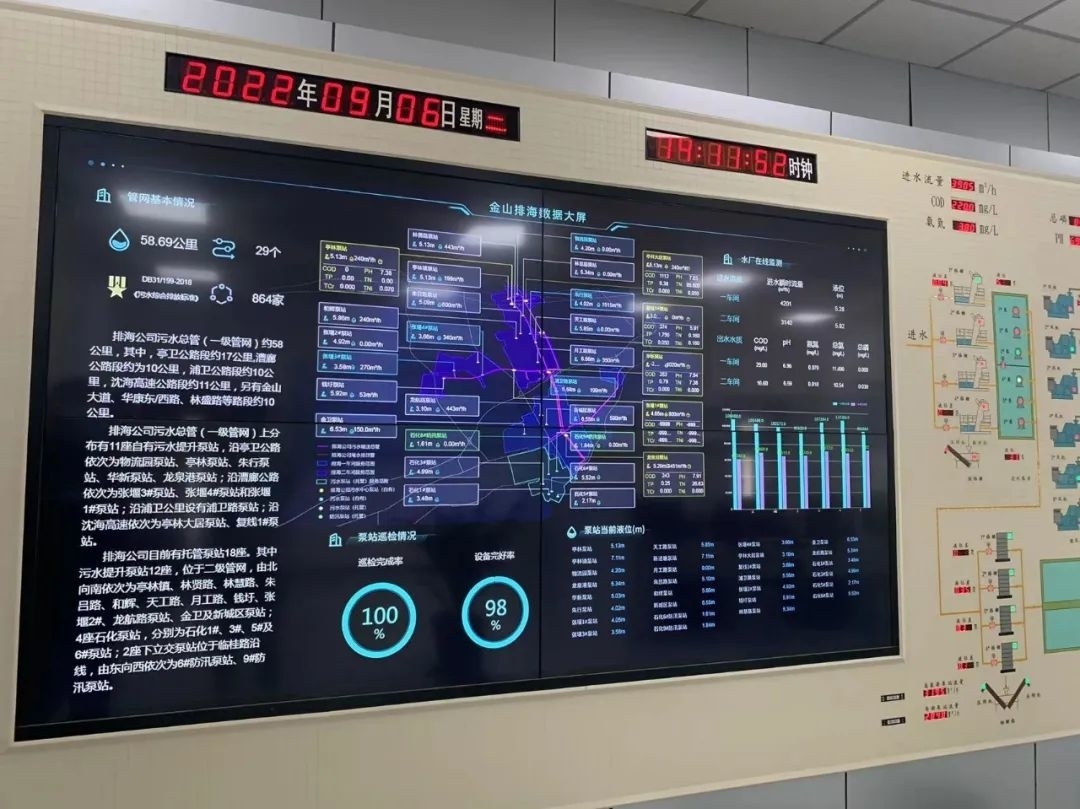 近年来,随着雨污混接改造工程的持续推进,全区河道的水环境质量已有了明显提升,也大大减小了污水处理厂的运转压力,提高了处理效率。“像过去强降雨,泵站液位就从3米直接上升到了5、6米,将近满负荷运行。雨污混接改造后,像常规的降雨,液位上升的幅度就不是很明显,我们整个服务区污水的收集压力也减小了。”金山排海工程有限公司生产经理黄虎一说道:“我们排放的水体也越来越好,像COD(化学需氧量)指标是50,我们实际排放值在二十几,比标准还要低一半。”