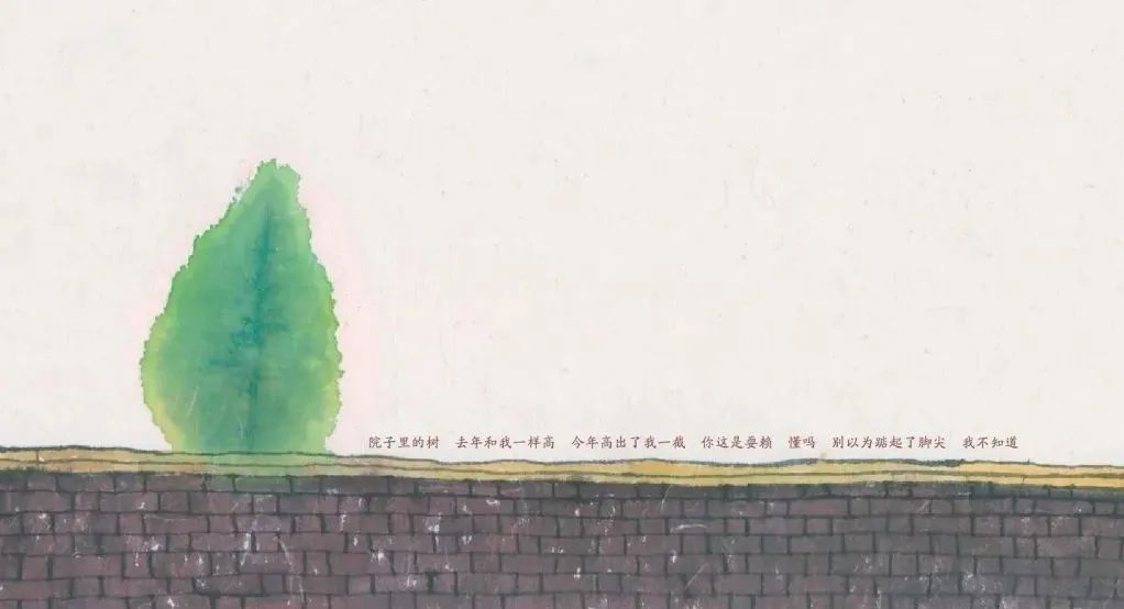 这次的“命题作画”,对画家来说是一次理解与想象的挑战。他尝试着走进每一首诗里,跟着诗游走观景,与诗人的想象一起碰撞,让自己做回孩子。图画创作经过了三年的打磨,最后的呈现令人惊喜:水墨风格的画面将散落的诗歌串联起来,构成了一幅美丽的生活画卷——那便是诗歌生长的地方。
