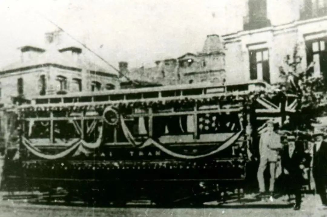1908年3月5日,上海第一条有轨电车线路(20路前身)正式开通 ↑