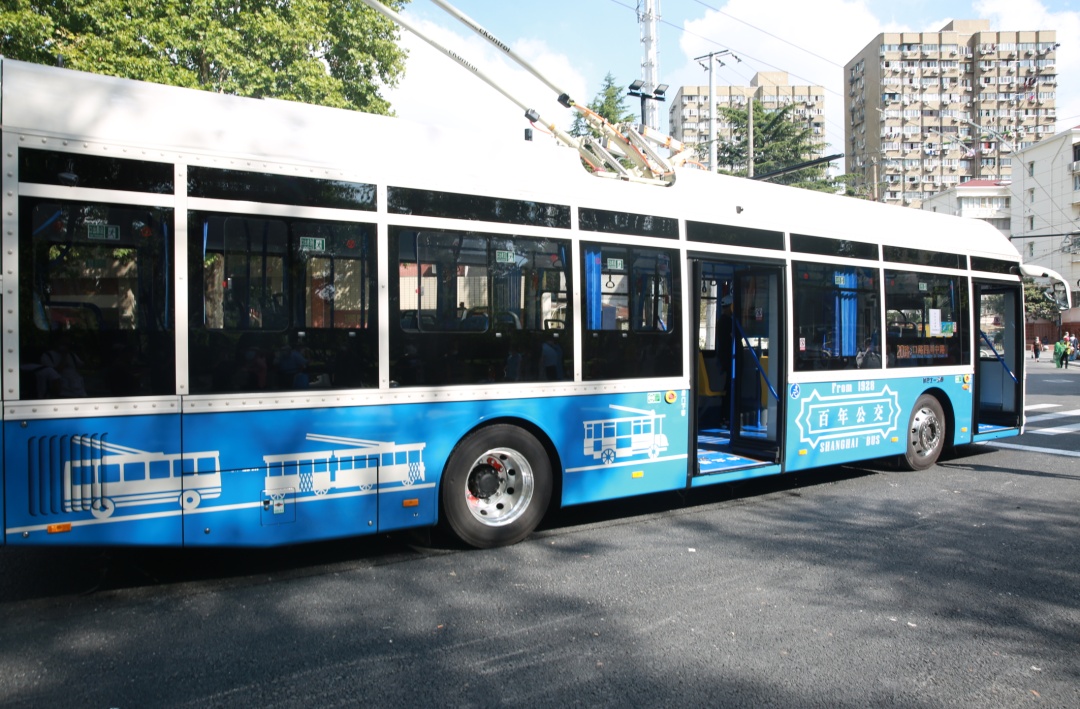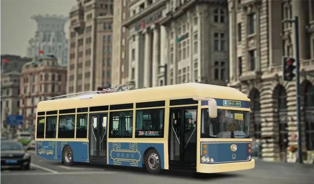 新车的造型取自历代无轨电车设备的变化元素,车身侧面,以雕刻画方式呈现上海电车百年以来的主要变迁,展现了上海电车的历史面貌。