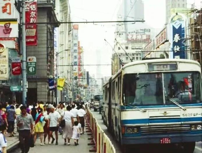 上世纪80年代,南京路上的20路公交是一道独特的风景线 ↑