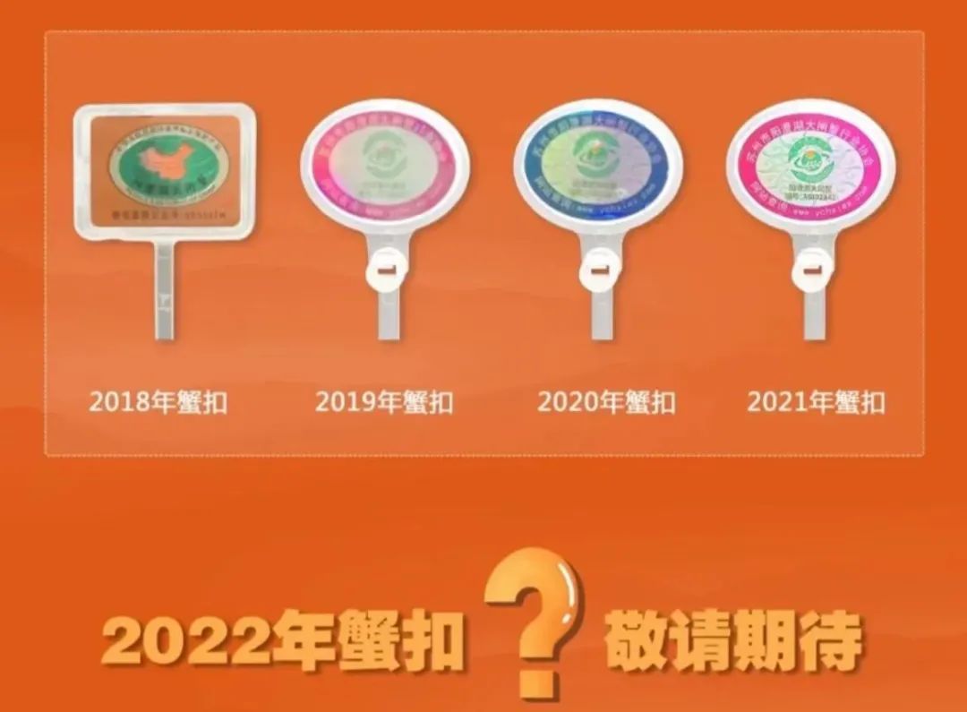 每只阳“阳澄湖”大闸蟹必须带有一枚蟹扣,代表着不同的养殖区域,相当于独一无二的“身份证”。