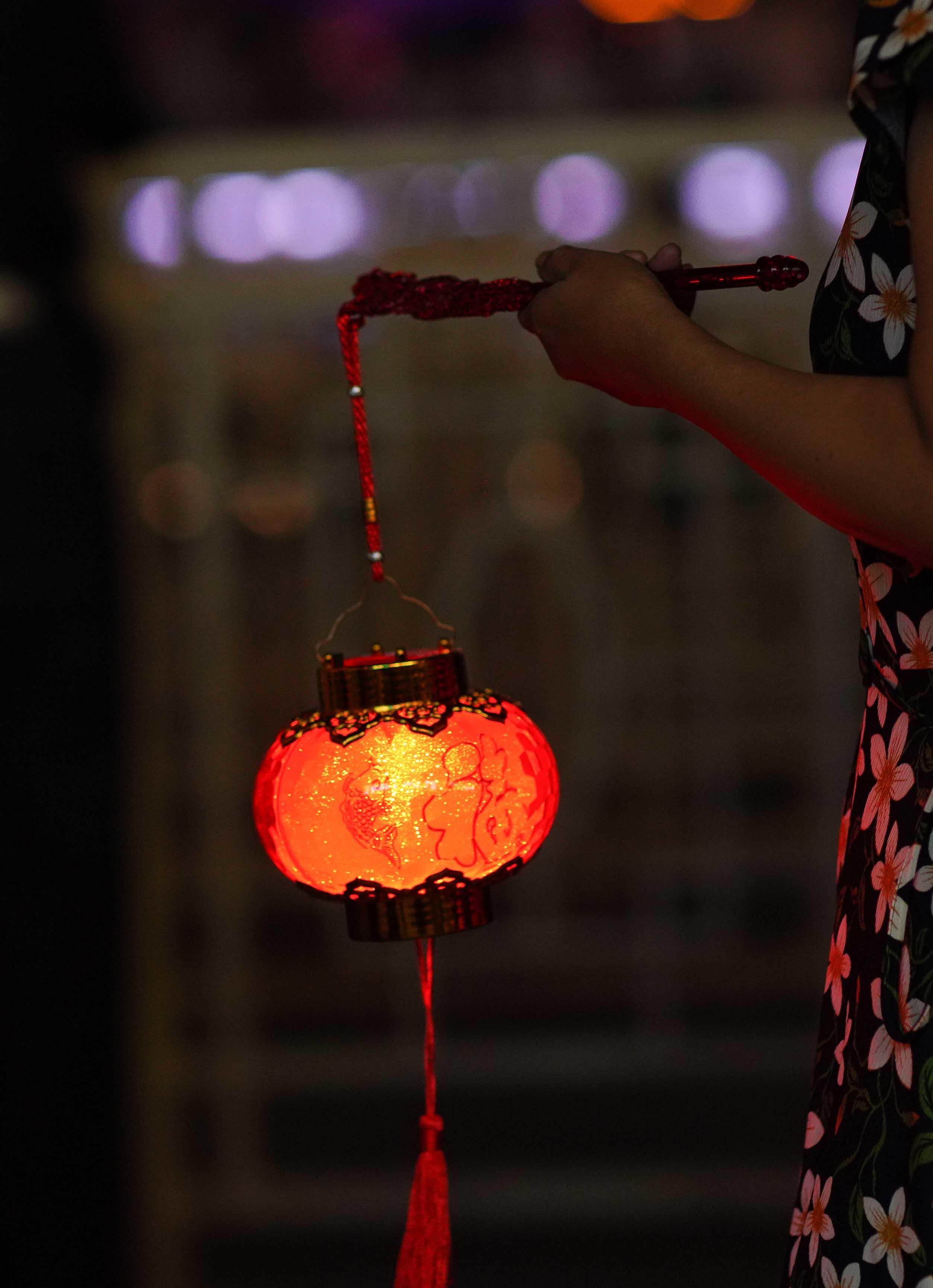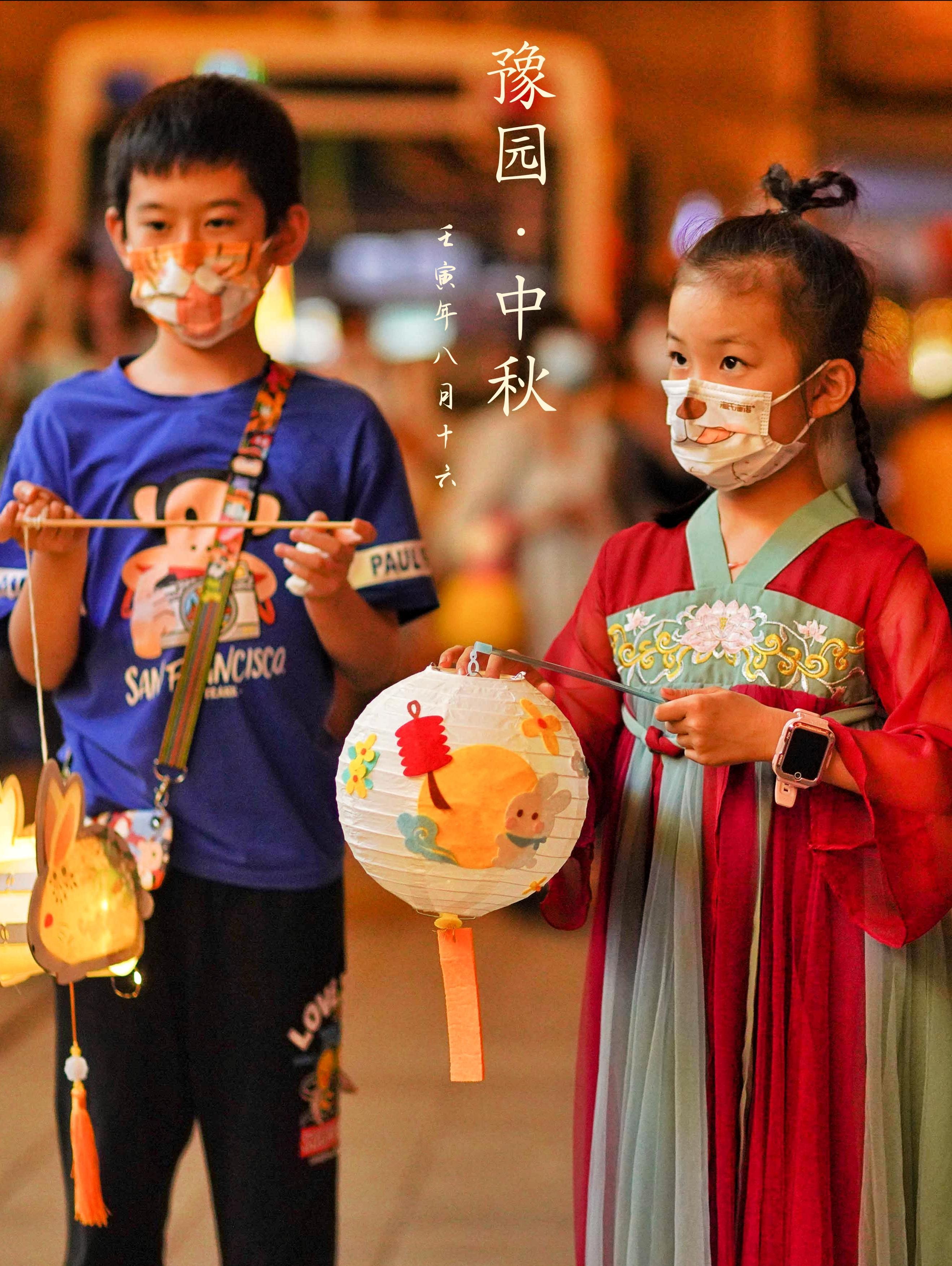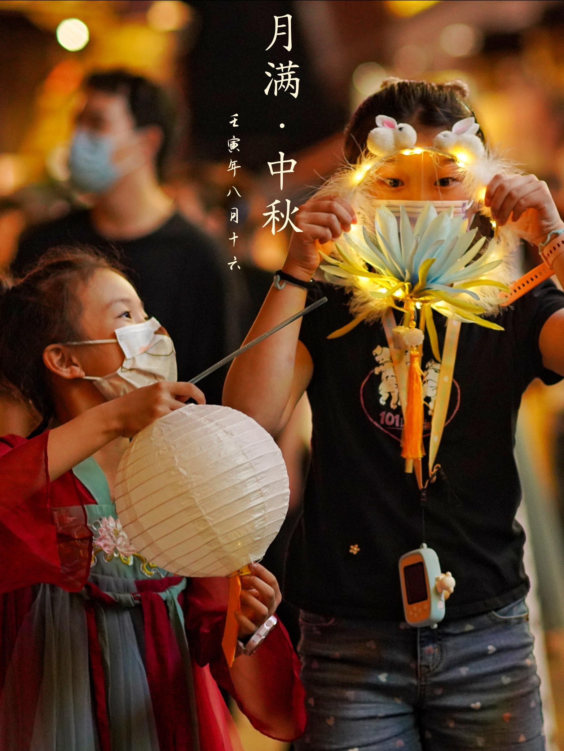手拿花灯赏明月,