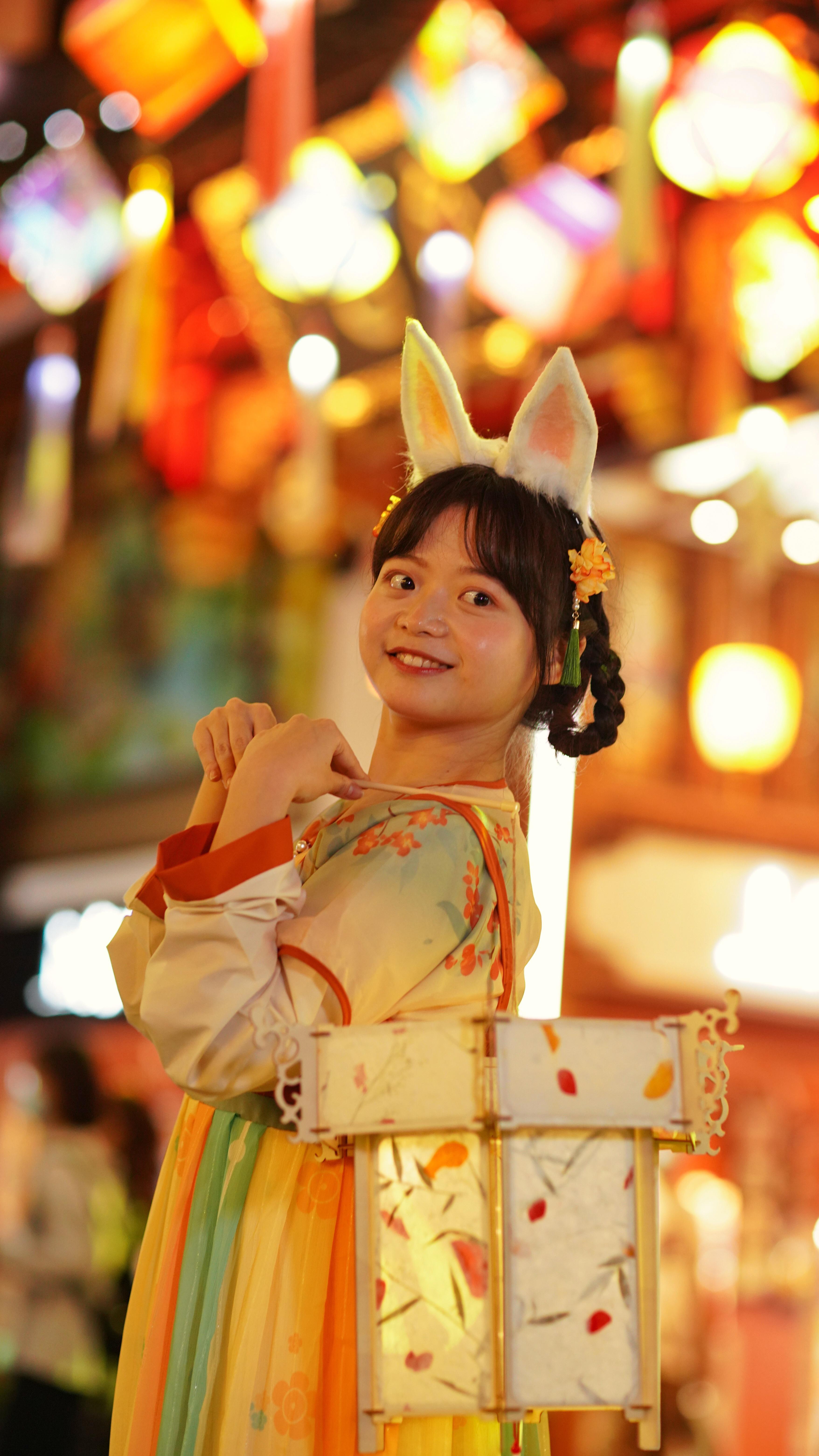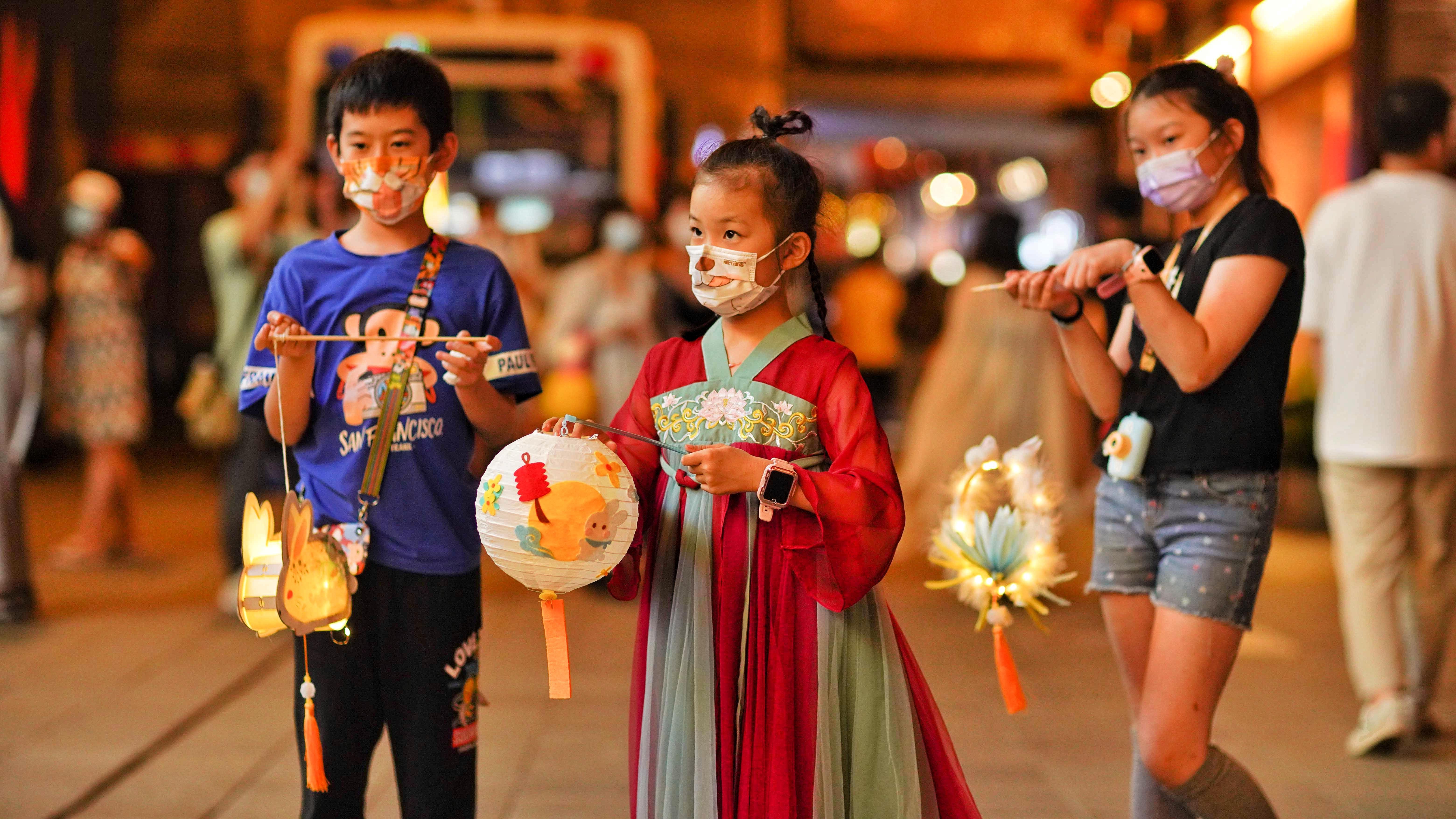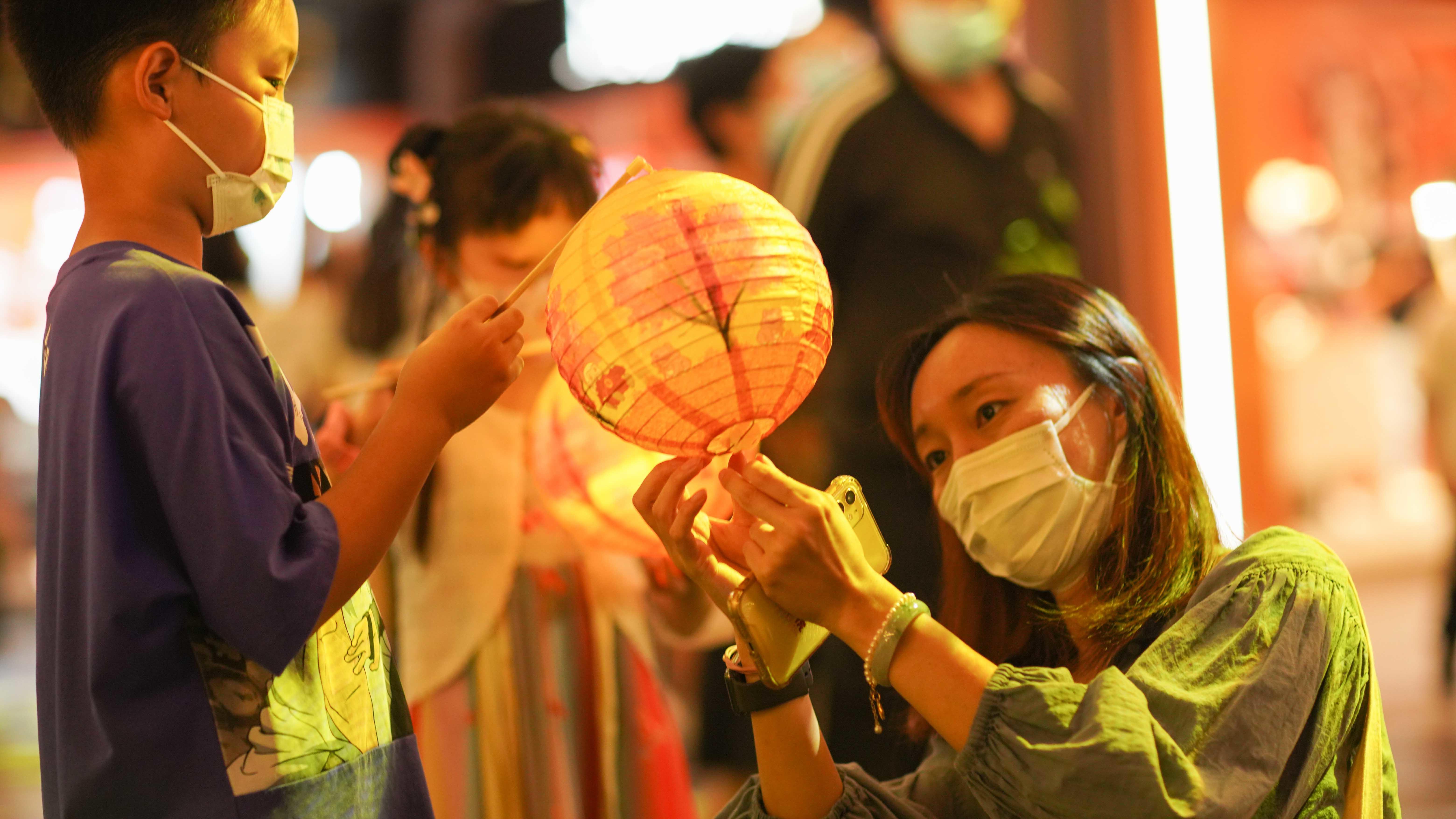 手拿花灯赏明月,