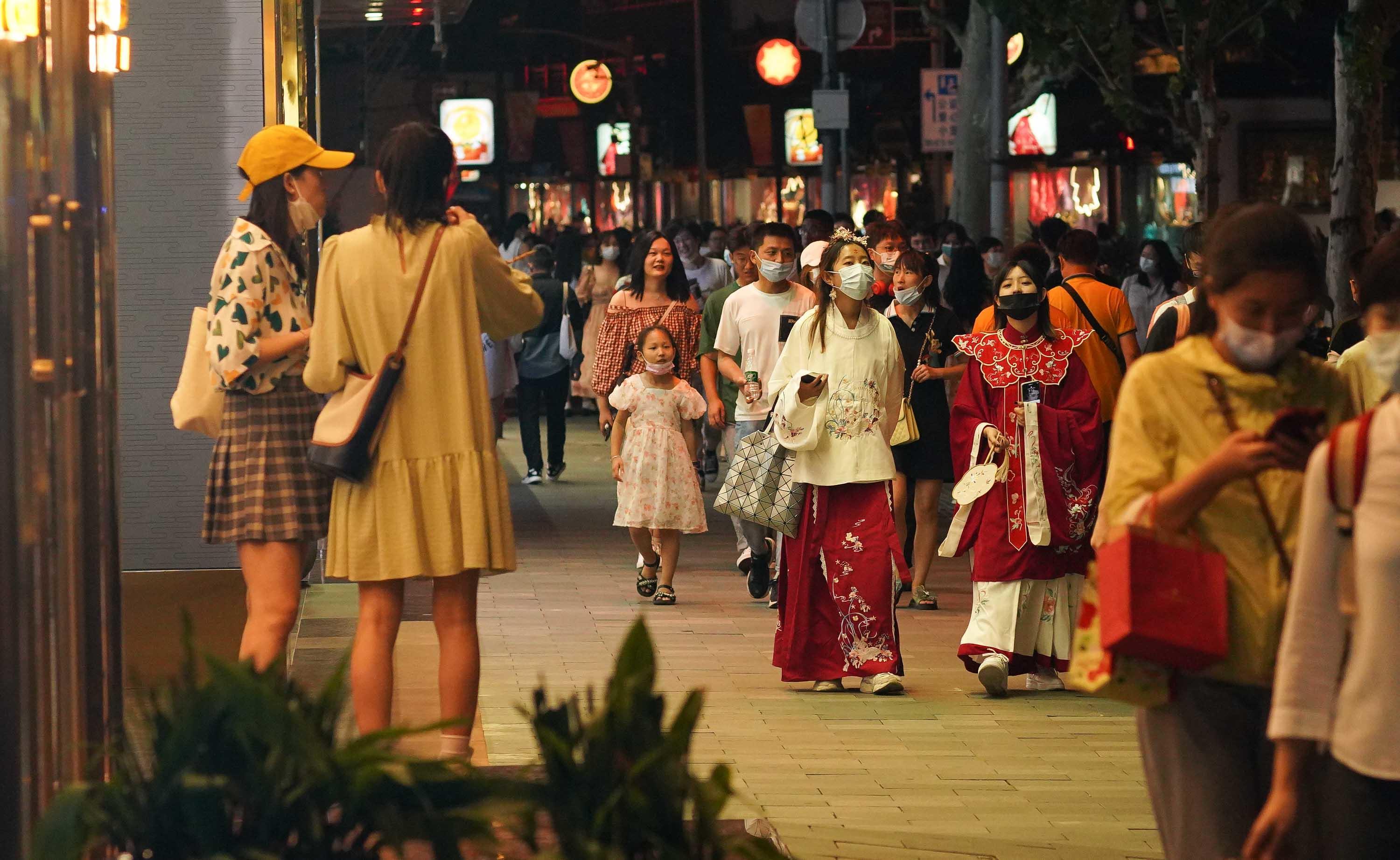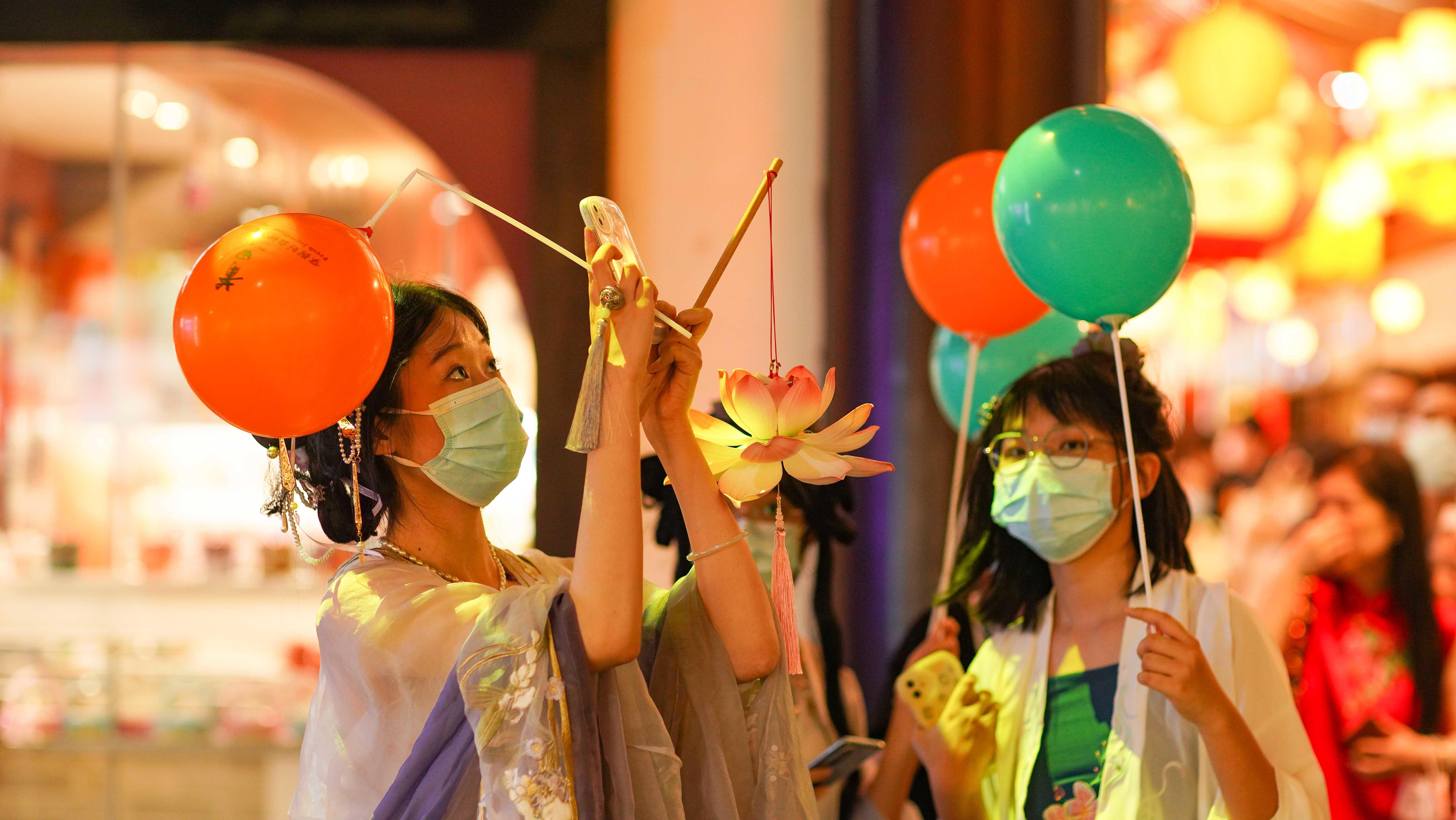 2022年的中秋小长假,古色古香的上海豫园商城迎来不少市民游客参观游玩,豫园商城推出“月夕恋话·恋与豫园中秋游园会”。