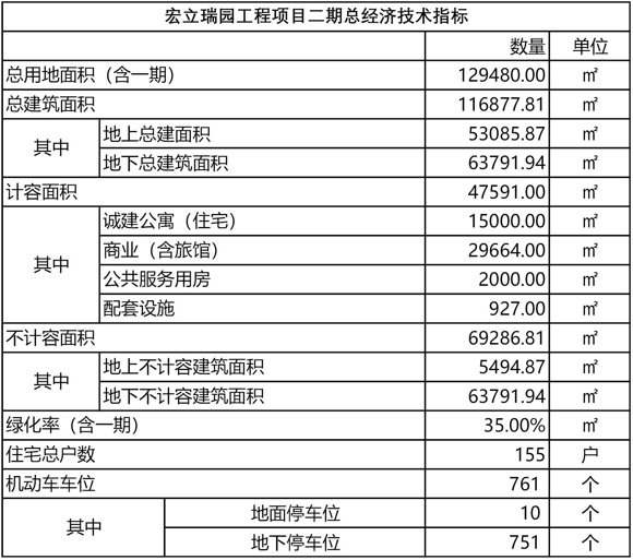 宏立瑞园二期工程项目总建筑面积116877.81平方米,其中地上建筑面积53085.87平方米,地下建筑面积63791.94平方米。包含住宅楼9栋,商业楼5栋,公共服务用房及配套设施6栋。