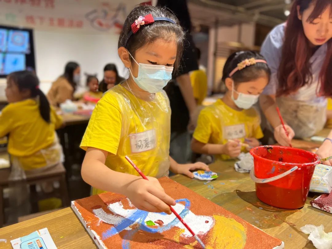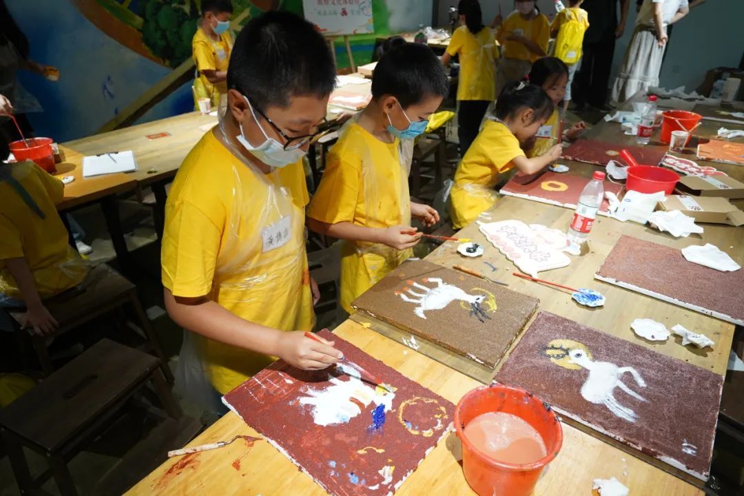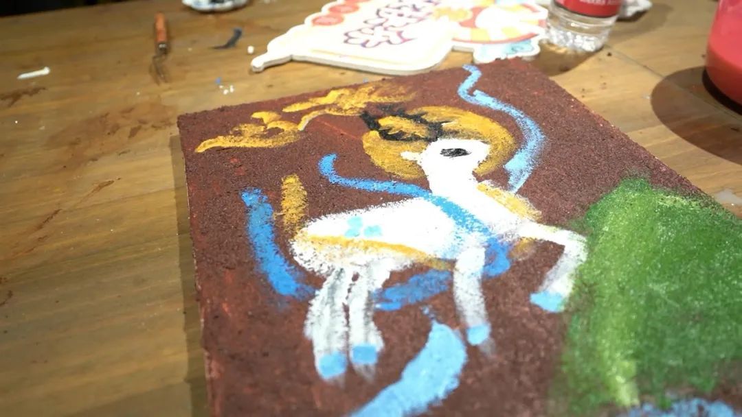 据了解,为了给孩子们更真实的壁画创作体验,主办方也对绘画材料和形式做了改良。“我们在底色调配的时候,加入了石英砂,铺底的颜料也是特地调配出了砖红、石青这样的经典敦煌传统底色,会更显现壁画的质感,现代的手法结合古代的传统艺术,让孩子们收获的不仅仅只是装饰品,更是他们心中的‘现代敦煌’。”带教老师方士源介绍。