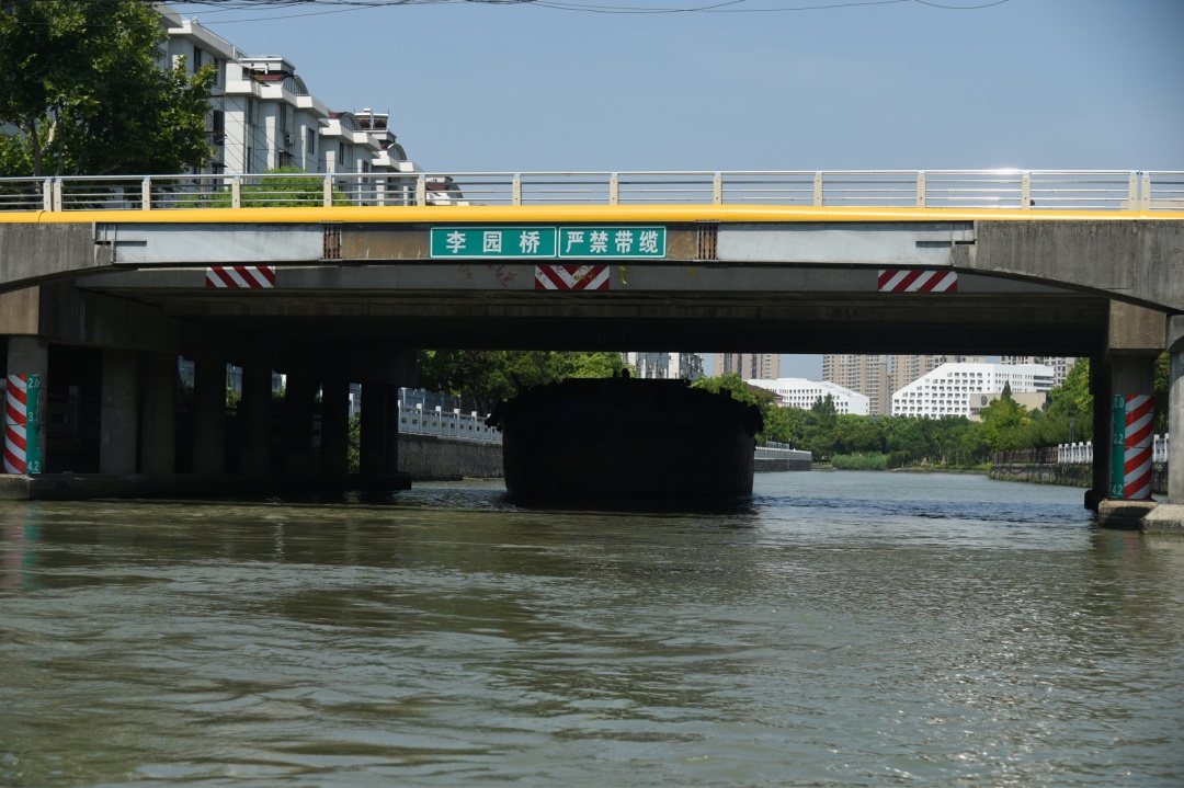 舟行至李园桥西侧,五一广场、紫云廊相继映入眼帘。2019年,紫云廊建成开放,这是继嘉定紫藤园后的另一座紫藤专类园,是嘉定环城河外圈绿道的重要景观节点。园内共配有紫藤花架3480平方米,精选栽植了牛岛、熊野、阿知等7个品种的149株紫藤。