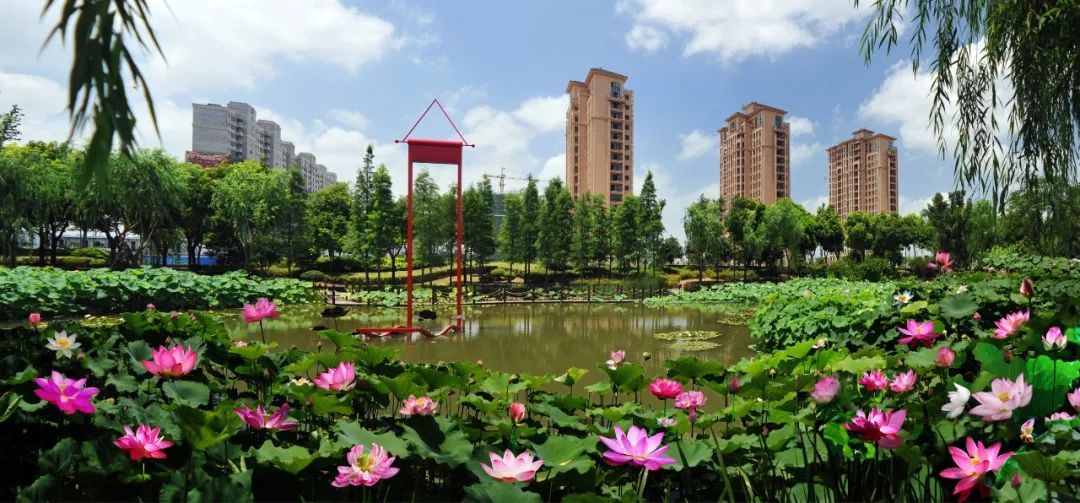 穿过北水湾大桥,陈家山荷花公园便出现在眼前。陈家山因荷花而闻名,赏荷文化源远流长,可追溯至明永乐元年。该园通过充分挖掘陈家山历史典故和荷文化,运用现代设计手法,重现“留香十里旧人家”“荷香杳然入梦”的江南水乡美景。