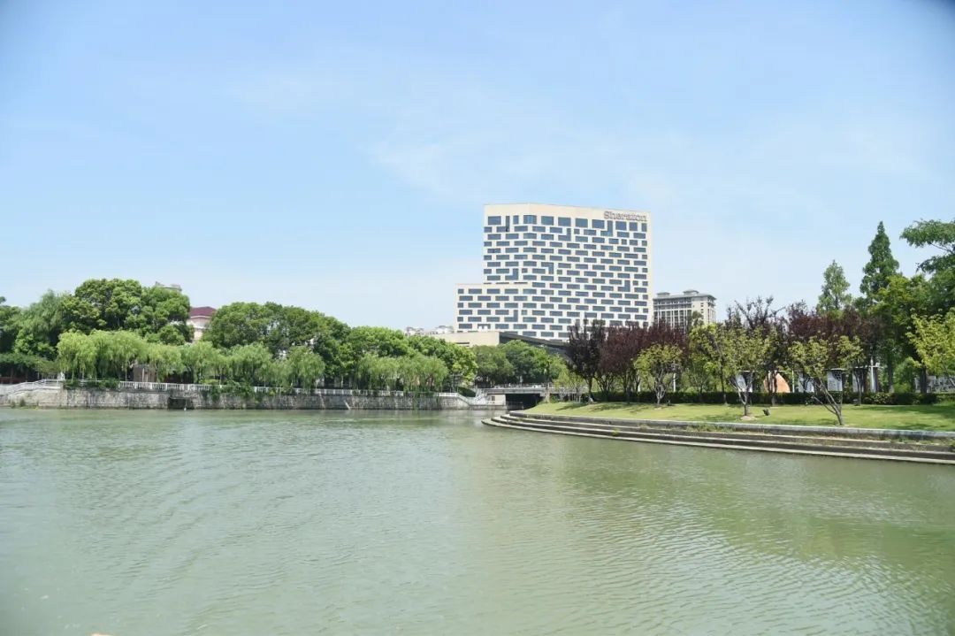 与信业购物中心隔河相望的是喜来登酒店。这是上海第五家、嘉定第一家喜来登品牌的五星级酒店,2015年8月开业后,成为菊园新区的地标性建筑。