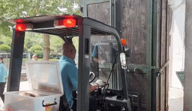 长颈鹿进入运输笼后,运输部分的工作才刚刚开始。体重300公斤的“姗六”,没有铲车、吊车、卡车的互相配合,可运不起来。