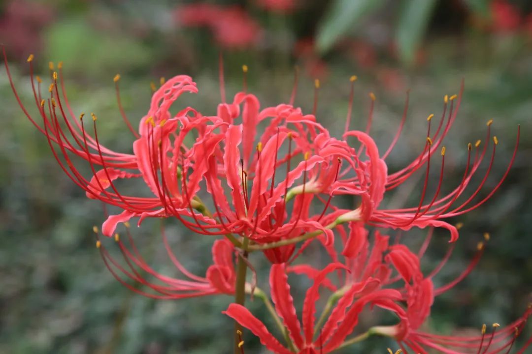红花石蒜是石蒜属中最常见、分布最广的一种。红花石蒜还有一个让人更熟悉的别名——彼岸花。因石蒜的花叶无法同在,故得此名。