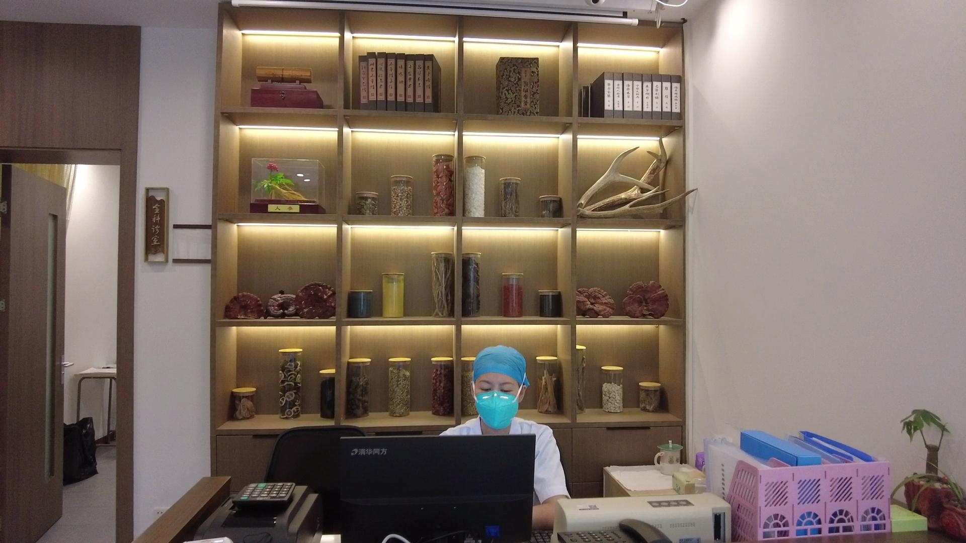 走进大厅,可见以“淞”味格局的浓浓的中医特色。护士台后是中式药柜,中药的属性有四气五味“寒热温凉,酸苦甘辛咸”,柜上是常用中草药的陈列展示。站点设立了互动区、器具展示区、中医品牌服务区等,并开设了全科门诊、中医门诊,提供社区常见疾病、慢性病的中西医诊疗服务,慢性病健康管理,中医适宜技术,中医体质辩识等社区医疗服务。有专业中医团队坐诊。