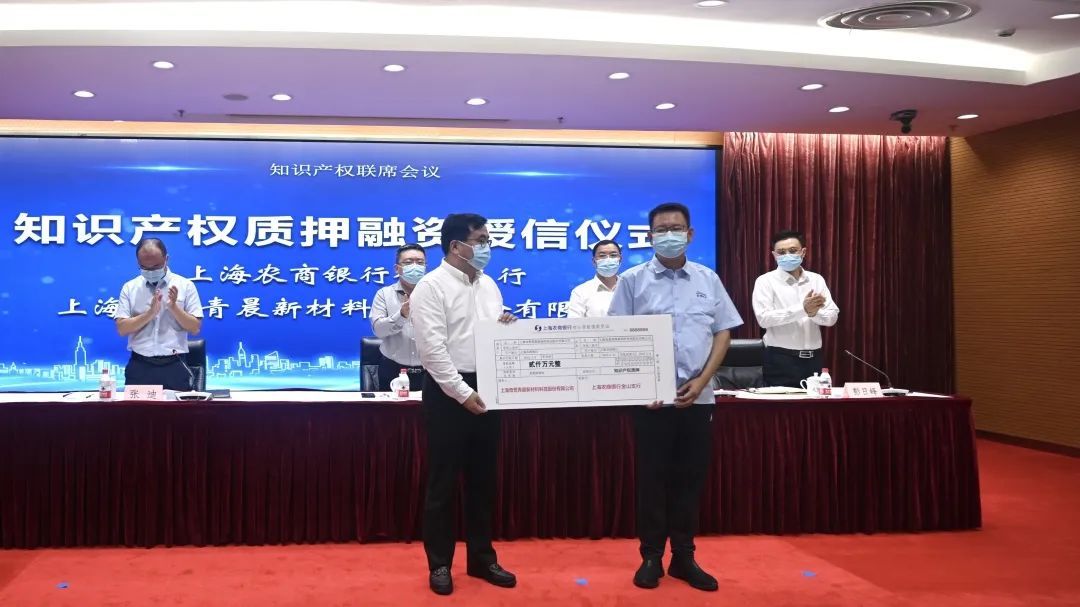 ▲ 上海农商银行金山支行为上海奇想青晨新材料科技股份有限公司进行知识产权质押融资授信