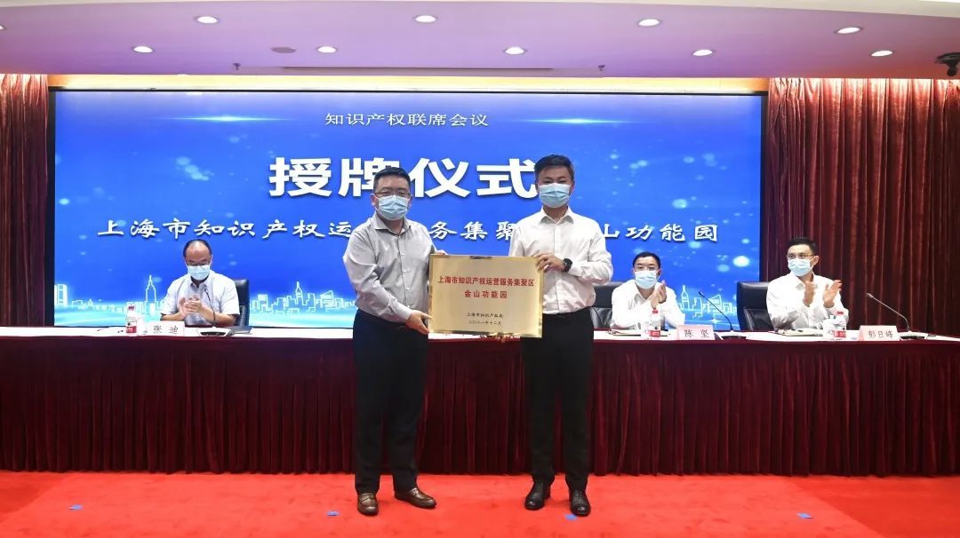 ▲ 为上海市知识产权运营服务集聚区金山功能园及上海市商标品牌创新创业基地授牌