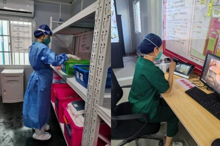 陈静和梅书学是医疗队的两位后勤保障组队员,正所谓“物资有保障,抗疫有力量”,他们负责所有工勤人员防疫物资以及部分工作物资的配备,每天200多位工勤人员要进舱,很多细节需要未雨绸缪。每天搬运物资无疑考验着体能,但物资的精细化管理更考验智慧。但是在两位队员的不断摸索下,很多流程越来越规范化,因此受到上海援琼医疗队的多次表扬。