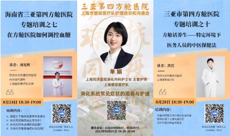 上海援琼医疗队来自14家不同的医院,专业方向也不同,这反而成为多学科诊疗的优势,很多同一专业的队员们有序组成亚专业会诊组,同时每天18:30开始专题培训,紧接着就是大交班环节,这无疑成为方舱工作运行的新模式。同济医疗队的单娟护士长、刘光辉医生和洪岩医生踊跃报名,分别就方舱内常见消化系统的识别与处置、如何进行血糖管理、中医养生技巧等内容进行分享。颇具特色的“方舱课堂”不仅让多学科的治疗理念在方舱内得到推广,还让各个医院的队员们成为了精诚合作的好战友。医疗组长刘洋每天负责疑难病例查房,黄洁丽负责方舱肾脏疾病的会诊工作,侯静静参与呼吸疑难病例会诊。除了理论培训之外,我院医疗队员们还参加了高热惊厥急性处置情景的模拟演练,强化了方舱内突发事件的应急处理能力。方舱内患者还出现过高血糖危象、晕厥、癫痫等棘手问题,但通过多个学科的紧急综合诊治,很多患者转危为安。