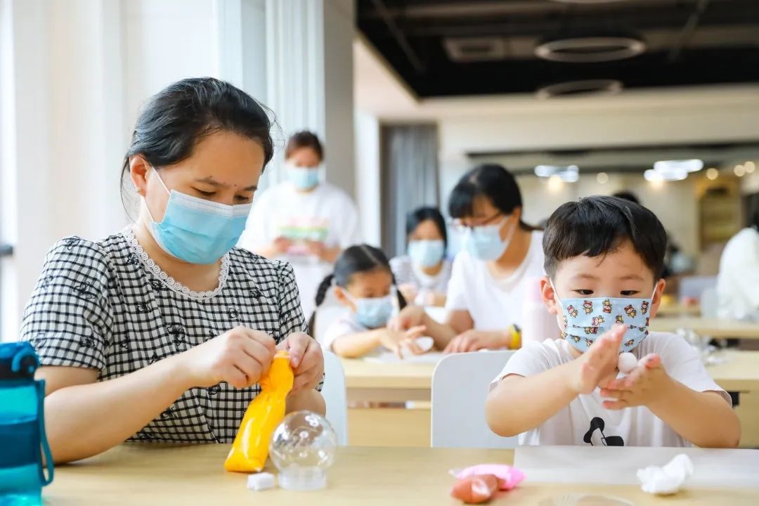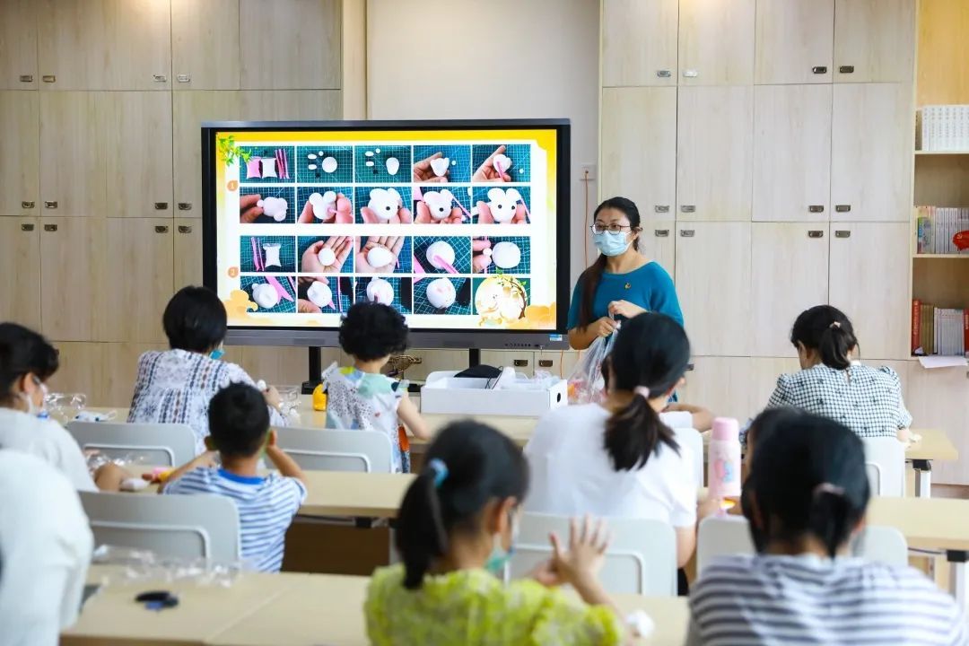 切割、压纹、涂色……很快,一盏盏各具特色的“月球灯”在小朋友们的巧手中“亮”了。“我才知道月球表面的凹凸不平是不规则的,用刷子在粘土上按压就能达到这样的效果。”小朋友林宇轩高兴地说。
