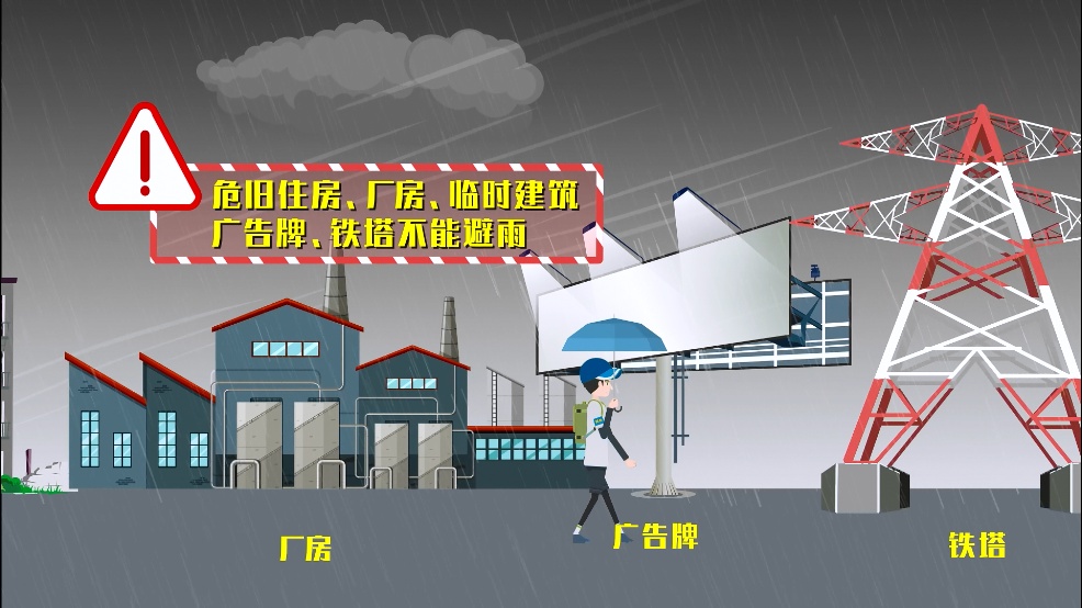 4.不能在危旧住房、铁塔等附近躲风避雨。