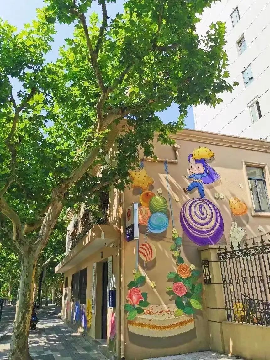 一幅幅可爱、治愈的涂鸦彩绘出现在变电箱或建筑围墙上。五彩斑斓的色彩、调皮可爱的卡通形象一一呈现,让花溪路上的街角风景充满了艺术感。