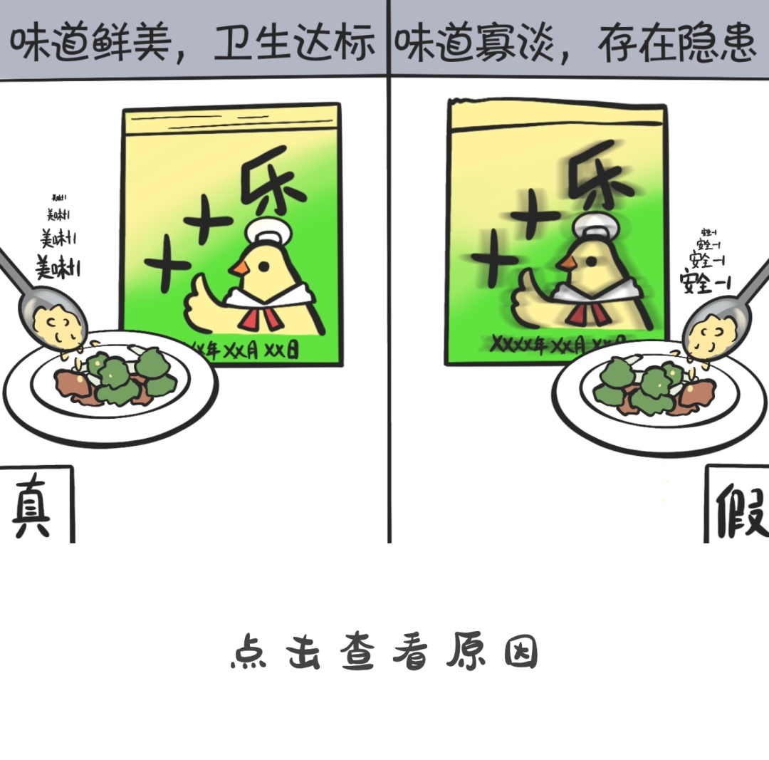检察官提醒广大消费者,随着不法分子制假造假技术的提升,真假鸡精在外包装上的区别可能越来越小,在选购食品时更要格外注意。比如,可以认真查看商家营业执照、授权许可等资质文件,尽量从正规商家购买鸡精等食品。同时,食用前注意检查食品的性状,不食用腐败变质、混有异物的食品。对于发现可能系假冒产品的食品,应当及时向有关部门反映,共同守住全员参与食品监督的社会防线。