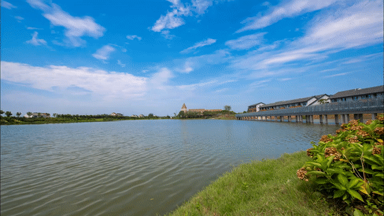 最长的桥,当属水库村湿地公园里的栈桥,蜿蜒曲折,时而穿行在林间草地,时而腾空在静静的水面。沿着栈桥一路走去,仿佛步入了桃花源。