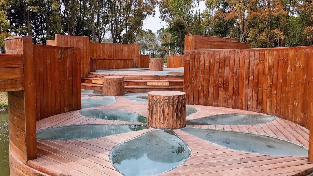 莲花桥是酷岛最著名的一座的桥,它的地面高低错落,桥面上有树墩,让走上桥的人们可以坐下来静静地欣赏水乡风情。木质桥面上,镶嵌着玻璃的“花瓣”,映着桥下的潺潺流水,周围是原木的栏杆。
