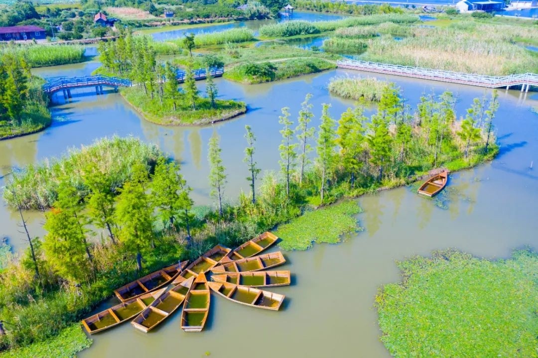湿地分为固土的芦苇荡迷宫、鸟类筑巢的杉林迷宫、涉禽觅食及繁殖的寻鸟秘影迷宫以及游客赏花探果迷宫4个区块,游客可乘游船、步行或骑行享受湿地公园的休闲和野趣。
