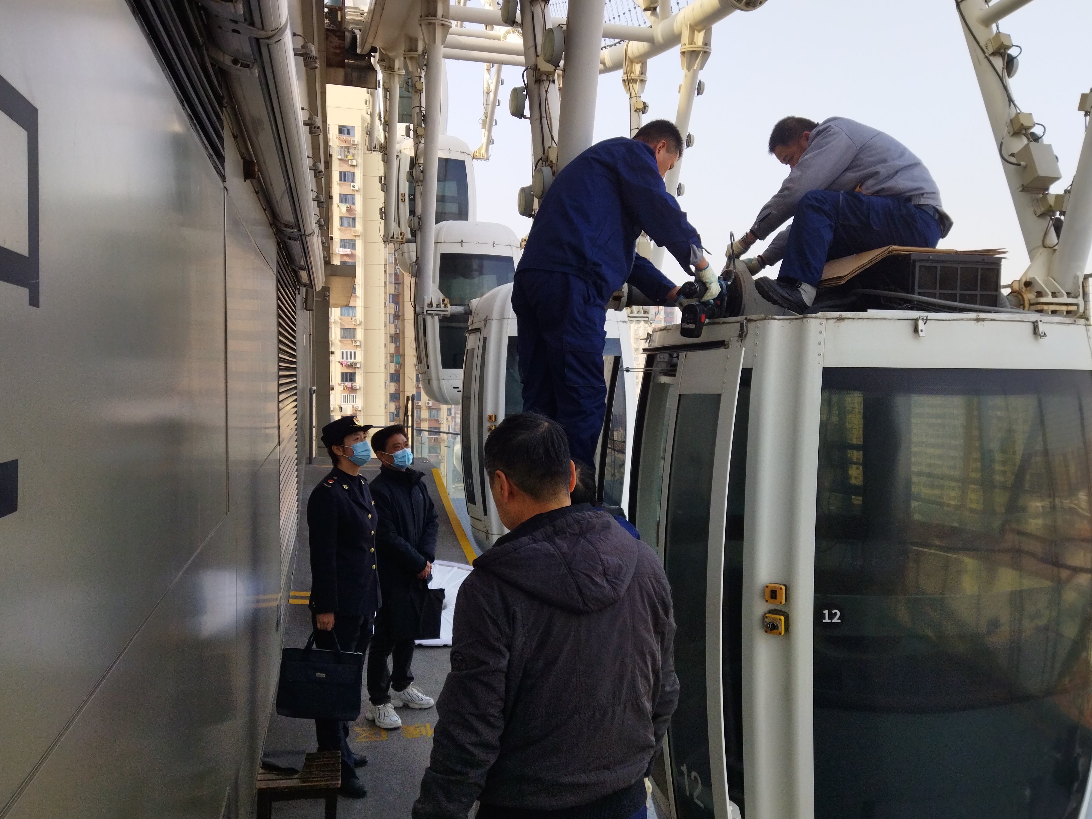 市场所督促大悦城做好摩天轮、电梯等特种设施设备的安全防护措施;督促辖区内各个特种设施设备使用单位做好防台防汛工作,确保使用安全。