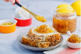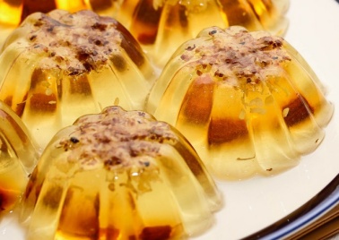 3、桂花冻凝固后取出,根据实际情况自行切开,可直接食用,也可搭配水果、奶茶、酸奶等一起食用。