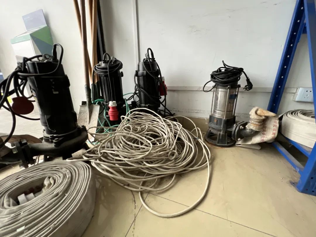 此外,为应对突发情况,园区管理方已将水泵等各种应急设备放在了指定储藏间,随时可取用。至于人员安排,一支近50位工作人员的小队将24小轮班值守,随时待命,缓解现场积水等情况。