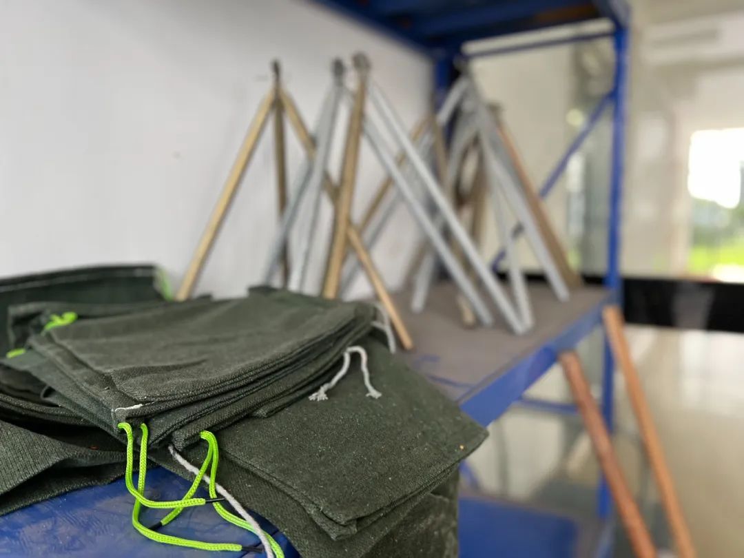 头顶问题解决了,脚下问题也是关注重点。上理工科技园地势较低,为了防止内部积水,园区做好了充分的准备。只见刘先洋来到办公楼前,先是手脚麻利地搬起两块防水板,挡在大门口,高度到成人小腿位置,又将多只沙袋层层叠叠地堆在一起,防水板边加设了密闭封条,更大程度上降低渗水风险,这已是台风天的固定操作了。