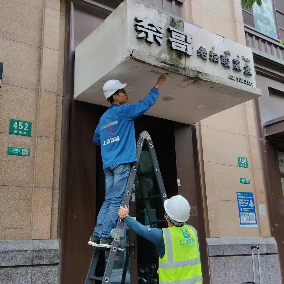 此外,区景观所积极部署开展安全巡查、隐患排查整改,结合年度违法户外招牌整治任务,提前部署对黄浦江沿线屋顶招牌实施应急拆除,保障公共安全。同时,委托第三方安全检测单位对户外招牌进行安全检测。各街道提前将存在安全隐患的户外店招进行拆除。