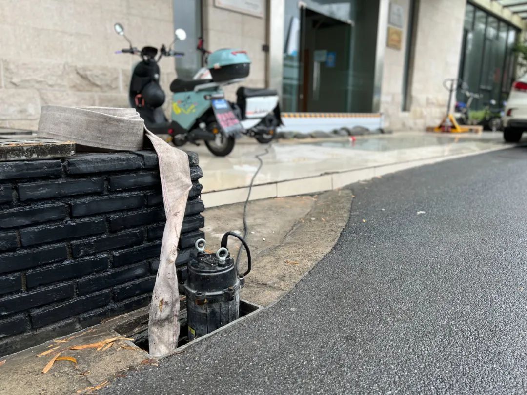谈平告诉记者,这些值班小队主要由办公室工作人员、物业管理处管理人员和保安组成。“比如临时出现了路面积水,这些值守人员就会紧急启动水泵等设备,或是铺设电缆,主动开展抽水等工作,在一定范围内缓解积水情况。”