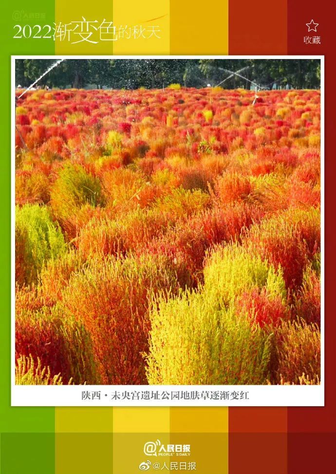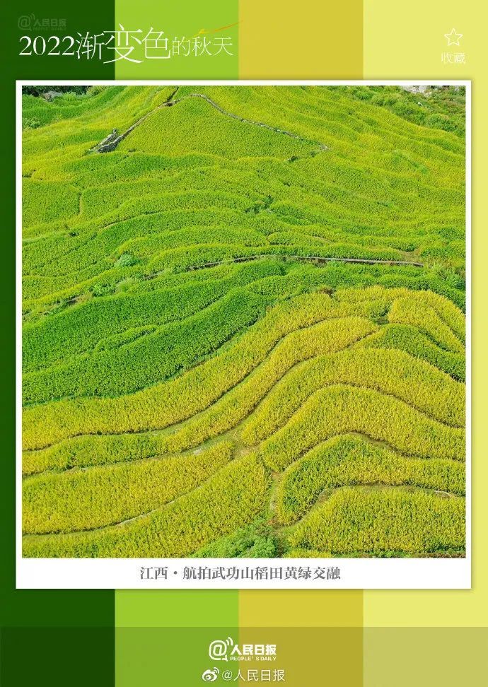 9月,绿叶泛黄,果实成熟,农作物丰收,多地开启渐变色模式。用色卡方式打开秋天的中国,感受大自然的华丽换装。