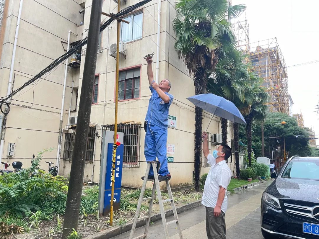 在嘉定镇街道桃园小区综合改造工程现场,施工单位对脚手架、施工设备等采取加固措施,并将位于楼栋顶层的安全防护网全部拆除。同时,桃园社区组织落实应急管理队伍,在台风影响期间进行24小时值班巡查,与物业配合处置突发情况。