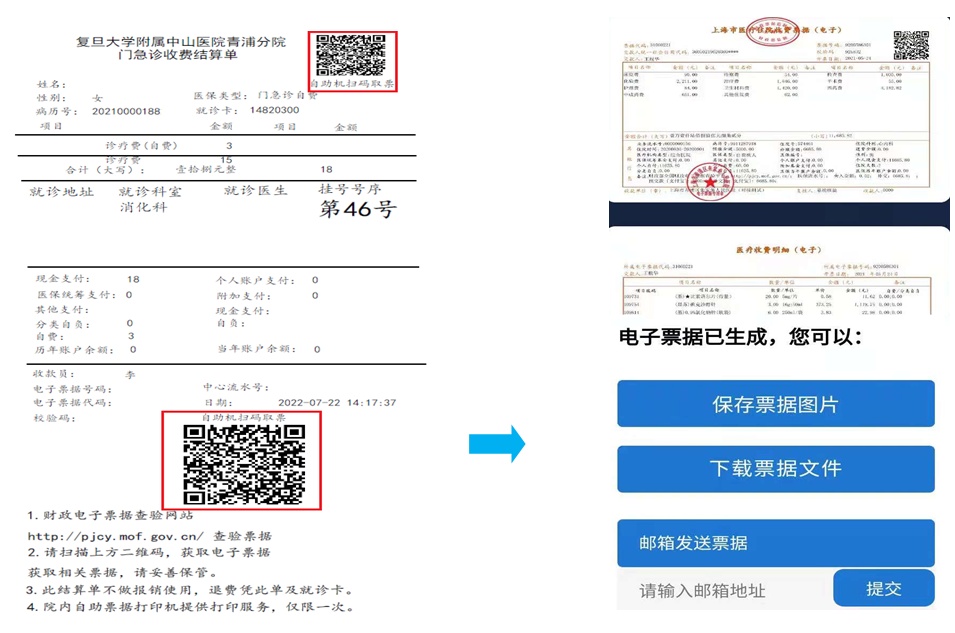 在中山医院青浦分院缴费结算后,均可通过以下方式查询并接收电子票据。