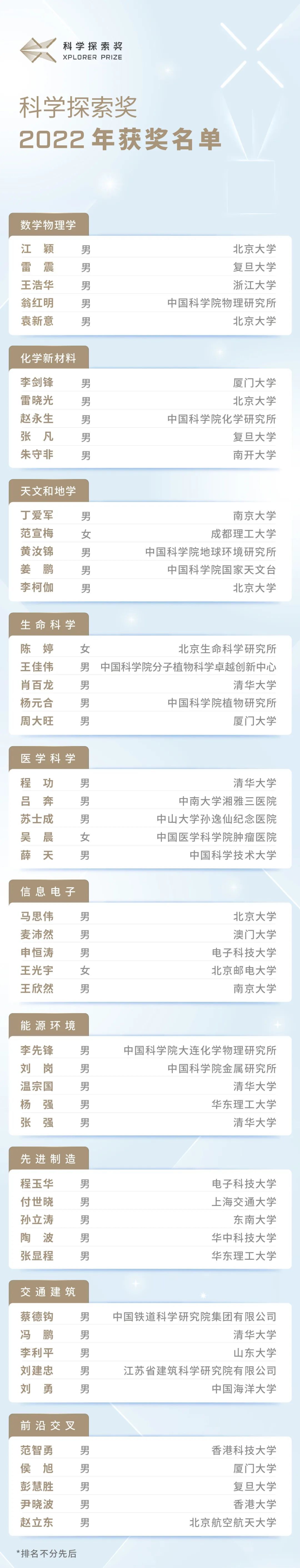 科学探索奖2022年获奖名单
