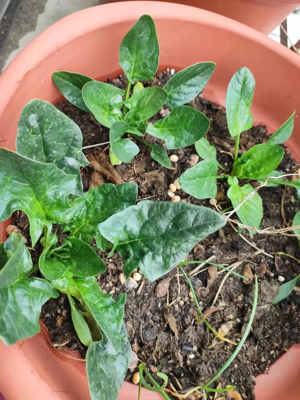 茼蒿属于半耐寒性的蔬菜,喜冷凉湿润的气候,对光照的要求不严,有一种特殊的味道,不招虫。同时,它也是可反复采摘的蔬菜,阳台栽上几盆,就可以一直吃到新鲜的茼蒿啦!