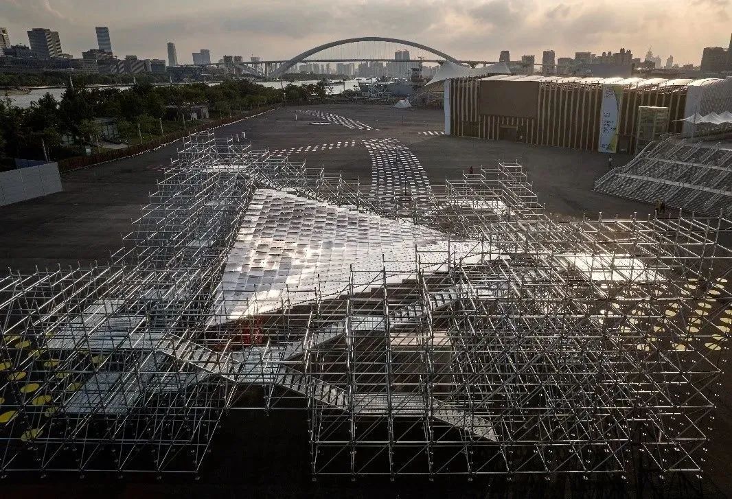 2010上海世博会中国船舶馆,是此次大会的主会场。同济大学负责本次大会场地总体规划及主题馆建筑设计,主题馆占地729平方米,是团队设计的 “设计锋巢·无止园”。传统的建造方式被全新演绎,以轻介入(可逆)的建构方式提供未来城市空间复用的可能性。