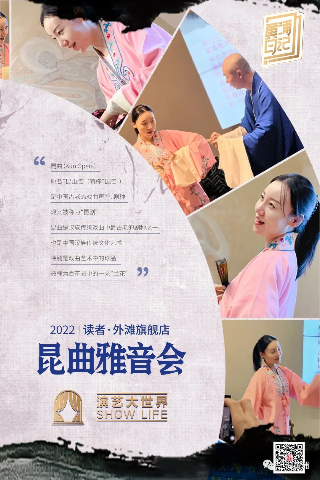 作为演艺大世界的一项品牌活动,9月15日,由黄浦区委宣传部、上海昆剧团联合主办的2022年“昆曲雅音会”正式启动。首场活动在读者书店外滩旗舰店举行。