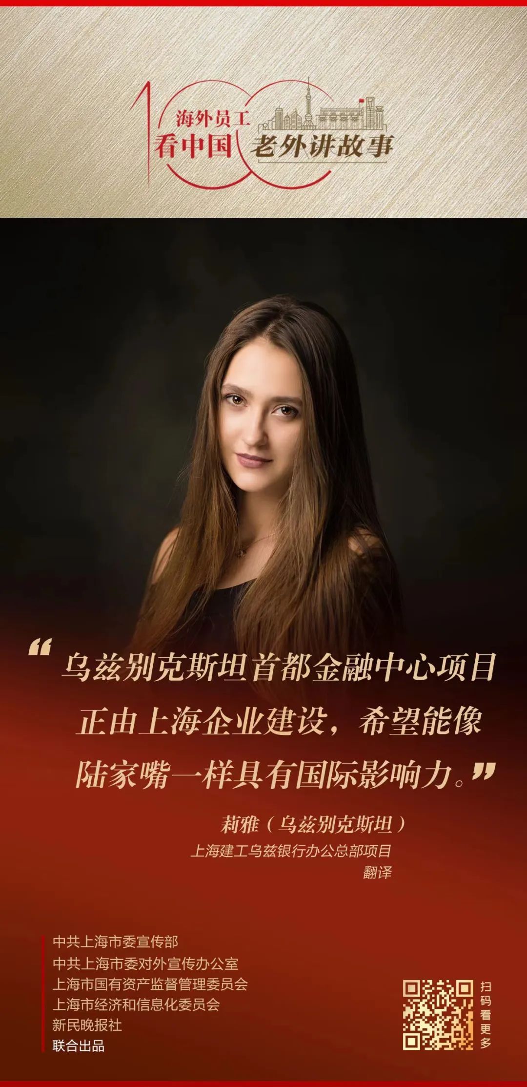 第10期邀请的是来自乌兹别克斯坦的莉雅,她为上海建工乌兹银行办公总部项目工作。