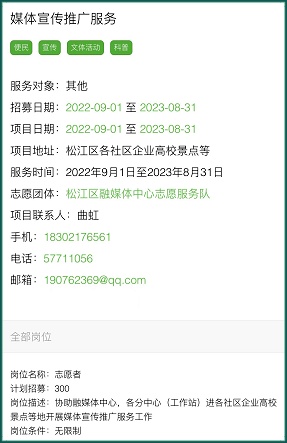 近日,松江区融媒体中心陆续在松江各社区、景区、高校和各街镇新时代文明实践分中心等地设置宣传服务专区,开展媒体宣传推广服务,现面向全社会招募志愿者,一起传播主流声音,弘扬社会正气!