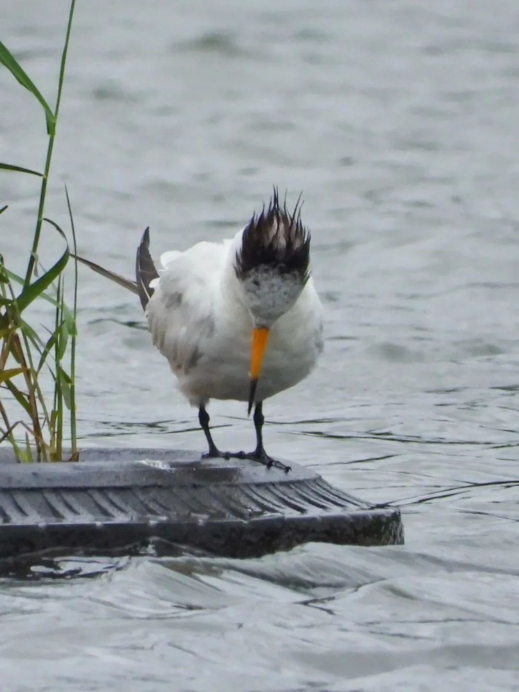 这时,陆阳突然发现一只鹤立“鸥”群的水鸟。和普通的燕鸥不同,它的发型很“酷”,不是平头,而是有点像“凤凰头”,怒发冲冠、根根竖起来;长长的鸟嘴不像普通燕鸥是黑色的,大部分是橘色的,前面一小段是黑色的,最尖的则是白色的“点绛唇”。“看到这只鸟,我简直不敢相信自己的眼睛。难道是中华凤头燕鸥吗?它可是世界最濒危的100个物种之一,全世界也不过百余只!”