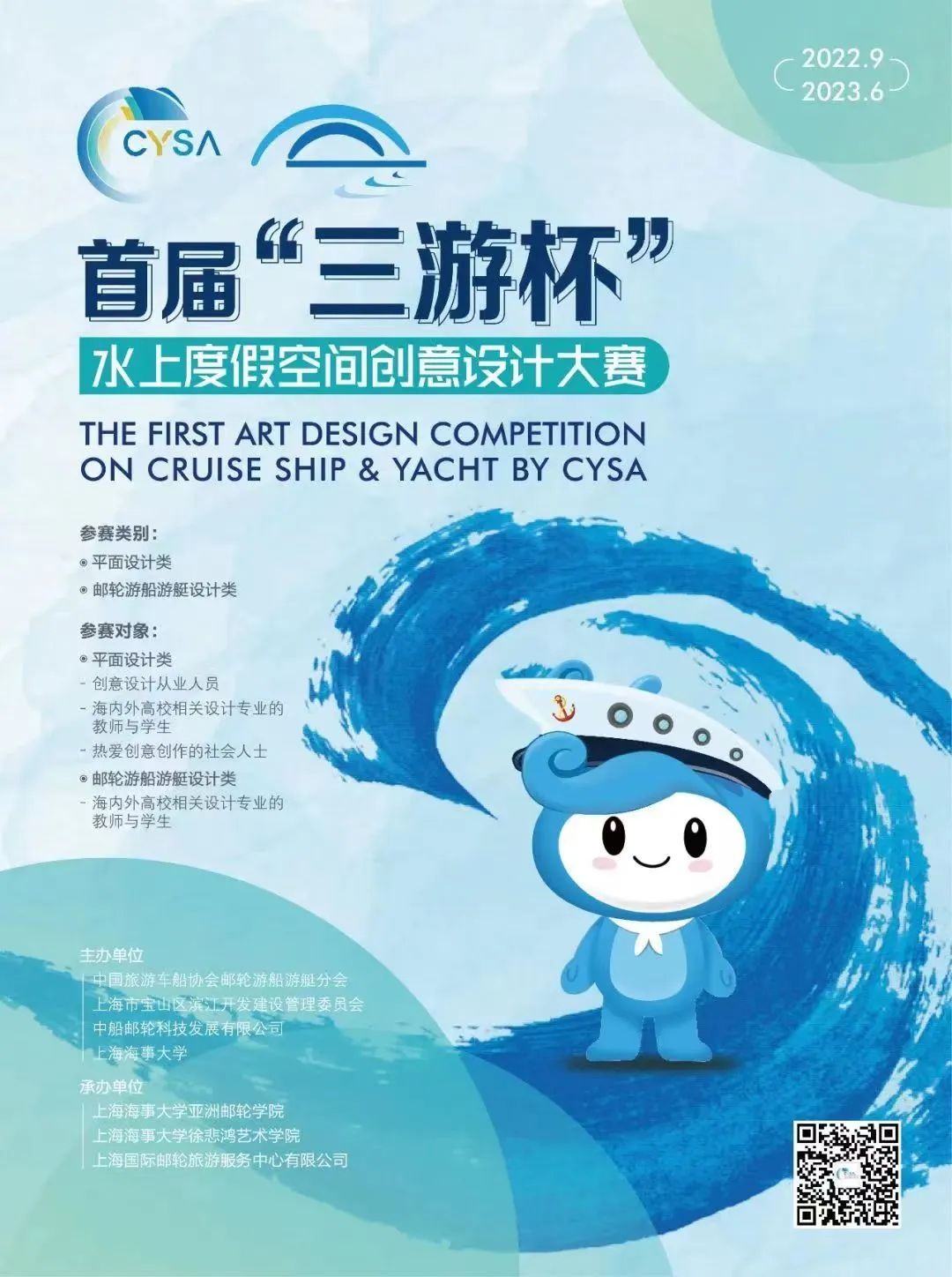 大赛聚焦“水上度假空间”,设置4个平面设计类命题和3个邮轮游船游艇设计类命题,面向清华大学美术学院、上海交通大学设计学院、同济大学设计创意学院、天津大学建筑学院、中国美院设计学院、武汉理工大学艺术与设计学院、上海华东理工大学艺术设计与传媒学院、哈尔滨工程大学船舶与海洋工程学院、上海海事大学徐悲鸿艺术学院、上海工程技术大学中韩多媒体设计学院等30余所全国高校征集和筛选优秀设计作品,同时也欢迎广大专业设计人才积极投稿。后续比赛设计周期为10个月,明年6月奖通过两轮评审最终将选出7个一等奖、14个二等奖、28个三等奖、42个优秀奖和优秀指导老师奖,相关优秀作品将有机会得到“三游”企业的转化运用。