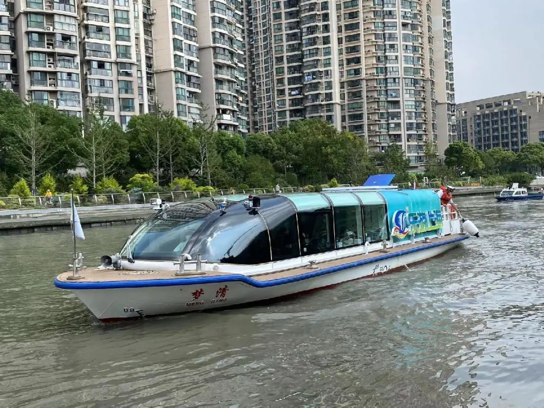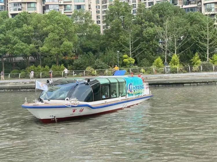 记者登船看到,此次承担苏州河水上旅游项目运营的为一艘新能源船,游船总长14.8米,船宽4米,采用磷酸铁锂蓄电池组作为船舶动力源,最高航速可达7节,额定载客20人。
