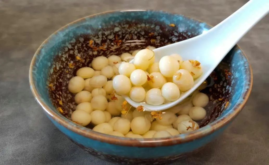 最简单的吃法是清汆,起锅待水烧开,将鸡头米倒入沸煮三分钟,最后兑入少许白糖和干桂花,一碗极素极简的糖水桂花鸡头米便“问世”了。用勺子轻轻舀起,送入口中,嚼起来既滑爽又香糯,还自带一股沁人心脾的本色。