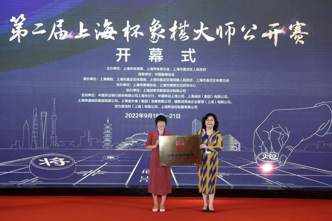 为建设全球著名体育城市重要承载区,今年上海杯象棋大师公开赛期间,嘉定区将开展“投资嘉定”月月签南翔镇专场活动,赛事形象与区域形象高度契合,体现“上海水准,嘉定水平,中国风,国际范”。今天的开幕式现场,进行了上海市象棋推广贡献奖授奖和胡荣华象棋教室授牌的仪式。