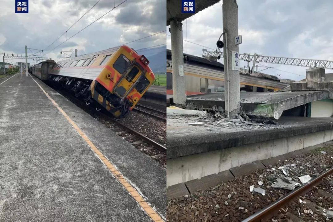 花莲高寮大桥桥面断裂,目前传出有2人受伤,正在救援。东里车站台铁列车第一节车厢遭月台雨棚倒塌压倒翻覆,车厢内乘客已离开。