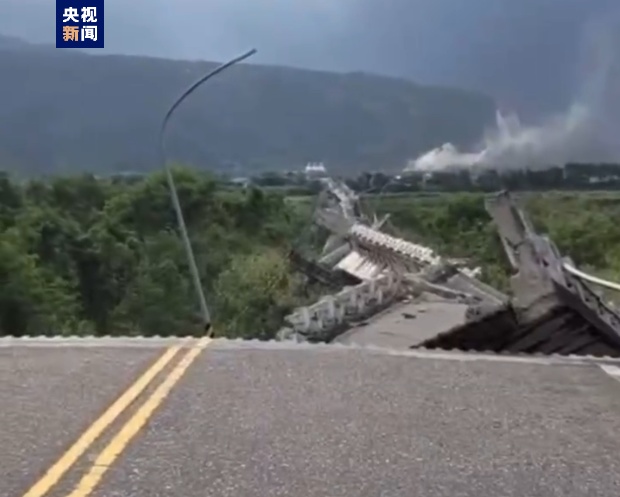 据海外网报道,台湾“东森新闻云”报道称,花莲玉里高寮大桥受地震影响,断成好几截,画面中可见,有民众刚好卡在桥中央,但前后桥面全都消失不见,画面触目惊心。